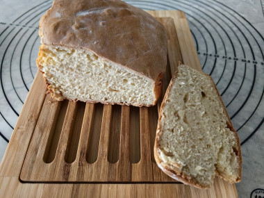 Кефир брал 2.5%, все ингредиенты по рецепту. Замешивал минут 5, в процессе немного добавлял муки, чтобы не так сильно липло к рукам. Под плёнкой пролежала заготовка 30 минут, дальше в форму на пергамент и 20 минут при 220 и ещё 20 при 200 градусах. Все пропеклось и даже поднялось, уже в процессе запекания, но это не хлеб - это довольно плотный и тяжёлый кекс. Пахнет отлично, вкусно, но камнем падает на желудок, так как при привычном размере кусочка - много муки.