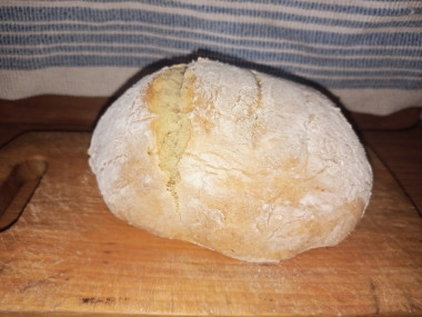 Фото, конечно, посредственные, ибо мне показалось, что полотенце выглядит аккуратно, но на деле это оказалось не так (хотела переделать фото, но уже успела отрезать кусок). Но мы на них можем различить трещину на поверхности хлеба, образовавшуюся при выпечке, а также можем обратить внимание на форму, которая показывает, что хлеб хорошо подошёл. Жаль, здесь нельзя добавлять гиф, так как я могла заснять, как кефир выливается через край мерной кружки при реакции. Спасибо автору за этот рецепт, хлеб стоящий, советую тем, кто любит печь.