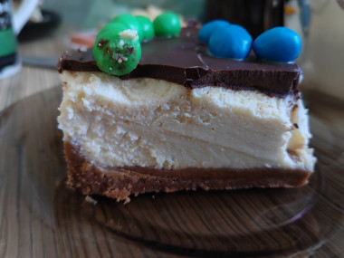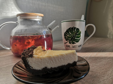Готовлю это чизкейк не первый раз, тк рецепт очень простой и вкусный. В этот раз решила немного поэкспериментировать. Взяла на основу шоколадное печенье, а вместо рикотты, взяла обычный крем чиз. Ранее спрашивала автора про возможность использования сливок 20%,но рисковать не стала, взяла сливки 33%. Мой эксперимент удался, чизкейк получился такой же вкусный. С рикоттой более нежный получается, а с крем чизом более сытный. Фото чизкейка целиком отсутствует, тк даже не успела сфоткать😁, даже фото кусочка было сделать сложновато.. Спасибо Марии за очередной вкусный рецепт🌺