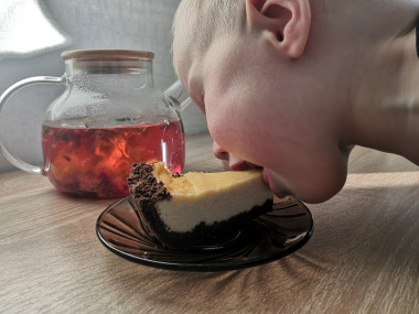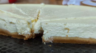 Сливочно-песочный корж и сливочно-творожный слой с ароматом цитруса – это домашнее блюдо американской кухни, в котором чувствуется натуральность по вкусу благодаря тому, что оно сделано из качественных продуктов. А поскольку оно приготовлено с любовью, то получилось намного вкуснее, чем в кофейне или кондитерской. Текстура самого чизкейка получилась очень нежной, тающей во рту. На вкус он очень сливочный. Цедра лимона придала десерту легкий цитрусовый вкус, который сделала чизкейк ароматным и придала нотку свежести. У меня получилось 8 порций, чизкейк был съеден сразу всеми 8 гостями, и всем он пришелся по вкусу, так что смело могу рекомендовать данный рецепт к приготовлению.