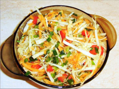 Все хорошо перемешайте и сразу подайте салат к столу. Приятного аппетита!