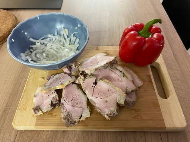 1. Мясо я вязала кусочек запеченой свинины.