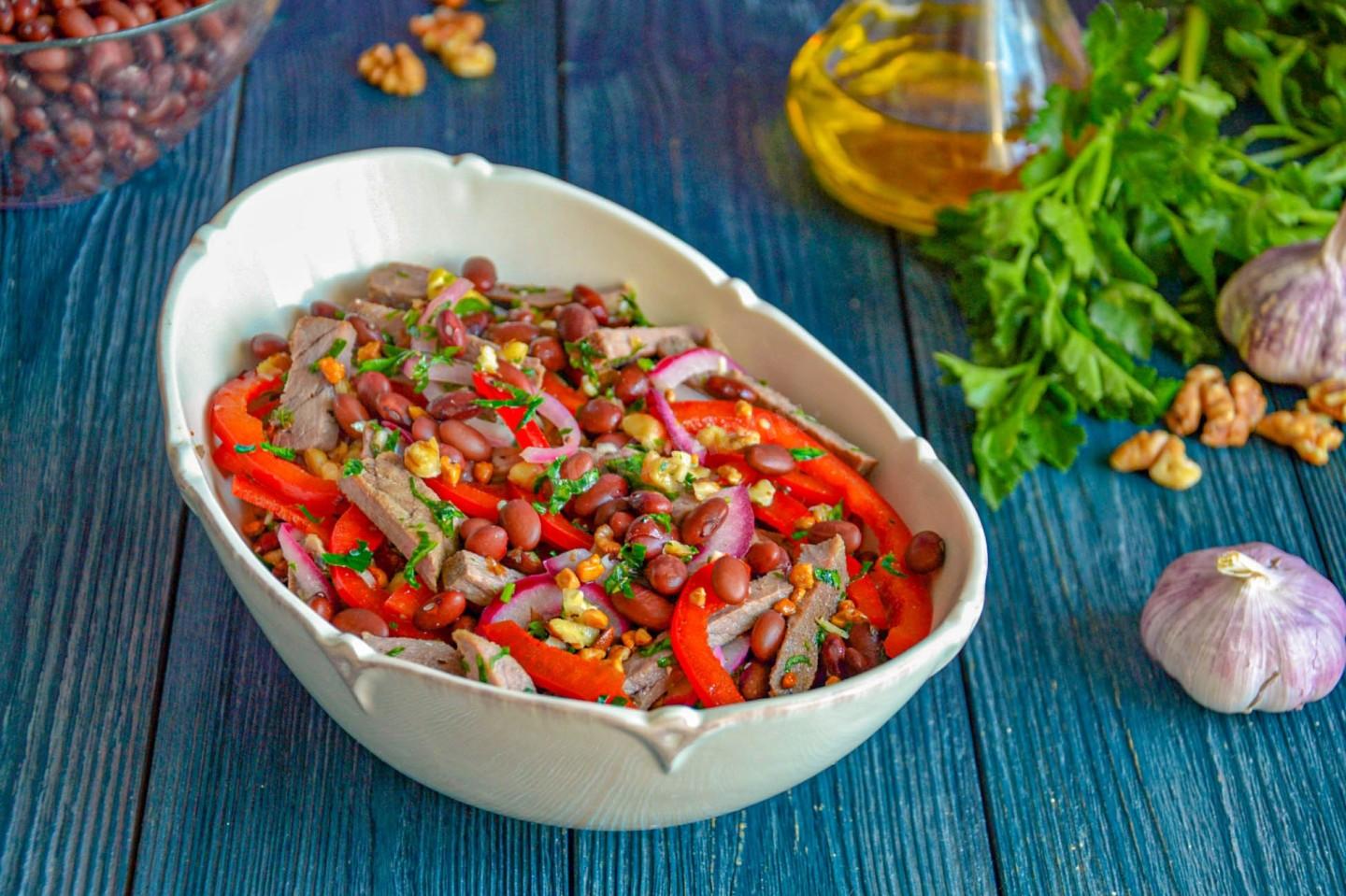 Салат Тбилиси говядина красная фасоль болгарский перец
