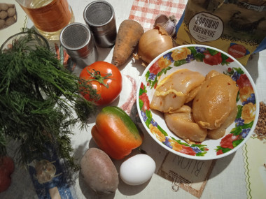 Курицу можно использовать для приготовления этого блюда целиком, разделив ее на небольшие кусочки, если блюдо готовится для большой семьи, либо взяв филейную или иную часть курицы. Мясо промываем, разрезаем на небольшие кусочки или кубики. Еще раз промываем мясо.