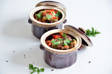 Очень нравится этот рецепт хашламы из баранины. Времени на приготовление, конечно, уходит много, но усилий в принципе особых прилагать не приходится - всё само готовится. В этот раз сделала без картофеля. Так тоже вкусно. Для подачи разложила хашламу по горшочкам. Всем рекомендую этот рецепт!