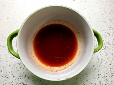 Подготовьте маринад. В глубокую небольшую ёмкость добавьте растительное или оливковое масло, сок половины лимона, соль по вкусу и любимые приправы. Я использовала копчёную молотую паприку, смесь перцев, сухой базилик, чесночный порошок и прованские травы.