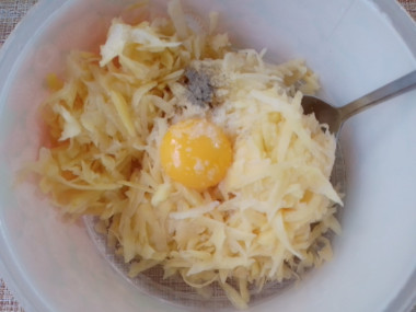 К картофелю добавьте желток (или целое яйцо) и перемешайте.