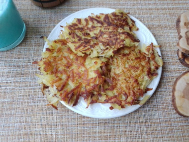 Лепешки без муки на сковороде такое простое,при минимуме ингредиентов, и такое вкусное блюдо,что хочется его повторить. Картофель натерла на крупной тёрке, отжала лишнюю жидкость, добавила яйца, соль,перец и перемешала. Обжаривала небольшими лепешечками с двух сторон до готовности. Без муки получаются намного нежнее. А со сметаной ...мм ..объедение! Делала двойную порцию, всё съели: очень вкусно! Спасибо Марии за чудесный рецепт!