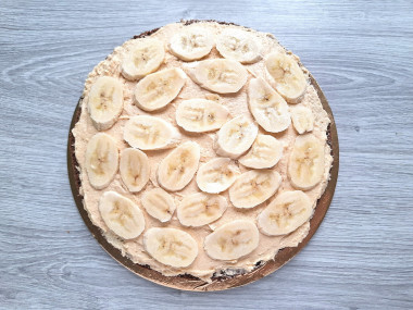 Банан помойте, очистите от кожуры. Нарежьте фрукт кружочками небольшой толщины.