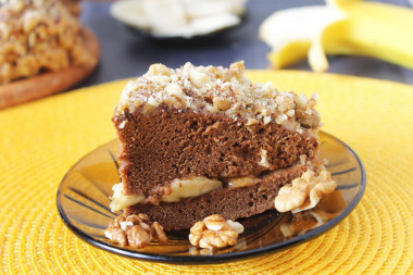 Торт с бананом и вареной сгущенкой получился очень нежный и супер вкусный. Лучше всего, на мой взгляд, сочетается с горячим чаем, в который необязательно добавлять сахар, так как тортик и так сладкий. Кроме бананов добавила ещё грецкие орехи в начинку. Спасибо автору за классный рецепт!