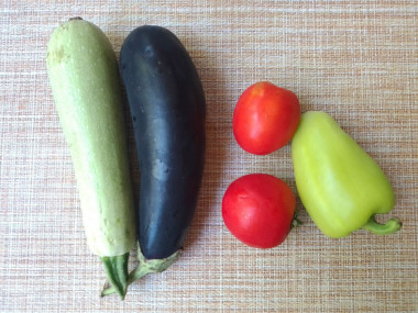 Как потушить баклажаны с овощами? Подготовьте все необходимые ингредиенты. Баклажаны и кабачки берите молодые, среднего размера. Помидоры выбирайте сочные, но плотные. Мягкие плоды плохо держат форму, в процессе нарезки и приготовления они расползутся в бесформенную массу и испортят внешний вид блюда. Перцы вкуснее с мясистыми стенками.
