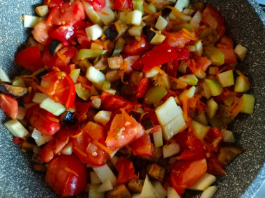 Обожаю тушёные овощи! Сегодня решила приготовить баклажаны с овощами по этому рецепту. Получилось очень вкусно! Правда, я готовила чуть дольше, овощи стали похожими на овощную икру.