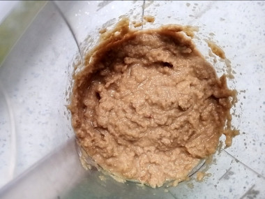 В чашу блендера сложите нарезанную грушу, замоченные семечки подсолнечника (без воды), влейте яблочный уксус и добавьте мёд. Пюрируйте всё до пастообразного состояния.
