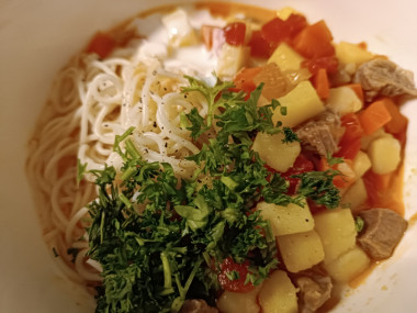 Рецепт узбекского классического лагмана понравился своей простотой и доступностью ингредиентов.