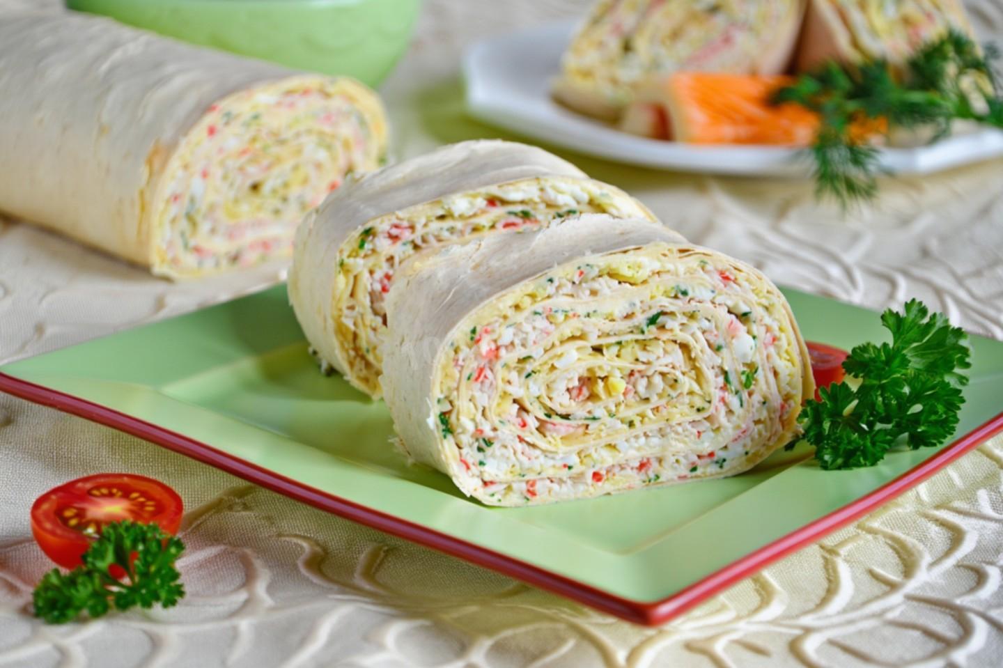 Нам очень понравился рулет из лаваша с крабовыми палочками сыром и яйцом по этому рецепту. Он такой нежный, вкусный, мягкий и при этом замечательно держит форму!