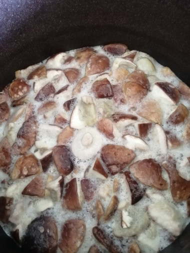 Спасибо! Белых грибов в этом году много, поэтому решила не только поесть в сезон, но и заготовить на зиму. Делать было легко и удобно, баночки стоят уже больше недели, но мы одну открыли по случаю неожиданных гостей. Общее мнение - единогласно вкусно. Довольна собой и этим рецептом.