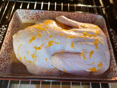 Чтобы мясо утки получилось мягким и вкусным, нужно птицу замариновать. Для маринада цитрусовые помойте, обсушите. С апельсина снимите цедру.