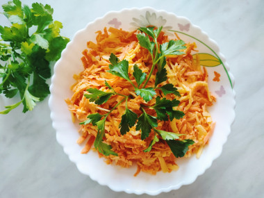 Очень легкий в приготовлении рецепт салатика, который можно готовить в любое время года. Морковь у многих хранится с осени в подвалах, но также и в магазине она всегда в свободном доступе и стоит недорого. Морковь - кладязь витаминов, которые необходимы нам для здоровья, так что, польза от этого салата очевидна. Морковь выбирайте сочную, тогда результат вас точно не разочарует. Готовьте и кушайте с удовольствием и хорошим настроением. И не забудьте угостить друзей!