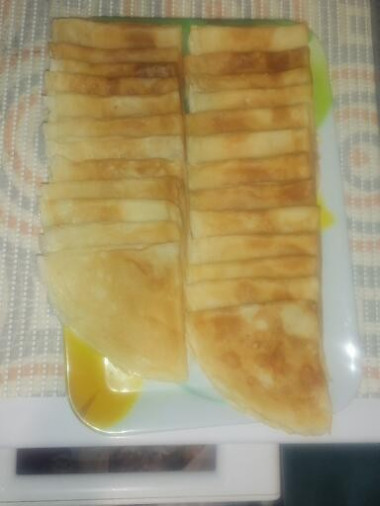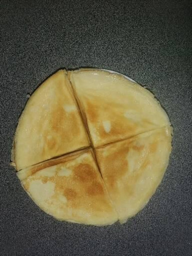 Наливала примерно половину черпака, тогда блинчики получаются тоненькие и с дырочками. В конце перевернула, чтоб были более красивые 😅