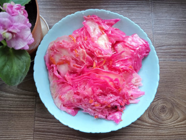 Рецептов маринованной капусты очень много, пробую разные. И вот решила приготовить маринованную капусту крупными кусками со свеклой по рецепту Snezhana. Приготовление не составило труда,а результат очень понравился.