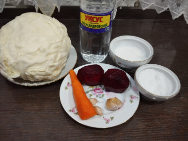 Как сделать маринованную капусту крупными кусками со свеклой? Подготовьте все необходимые ингредиенты. Такую закуску можно готовить круглый год из свежих овощей. Можно делать ее впрок, она хорошо хранится в прохладном месте, и чем дольше стоит, тем становится еще вкуснее и насыщеннее ее вкус.
