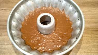 Форму для кекса выстелить пергаментом и присыпать мукой. Я просто смазала маслом и присыпала мукой. Если у вас силиконовая форма, то ничего делать не нужно - готовый кекс сам отделится от нее. Вылить тесто в форму.