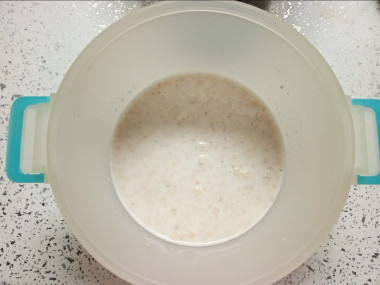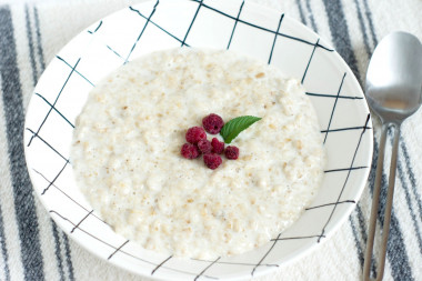Залейте овсяные хлопья молоком из пропорции 1 к 2. Но если вы используете овсянку типа Геркулес или Экстра-1, тогда нужно соблюсти пропорцию 1 к 3, так как время варки увеличится. Для приготовления используйте высокую и широкую посуду, чтобы у пара было место для выхода и молоко не убегало. А все секреты приготовления из овсянки читайте по ссылке в конце рецепта.