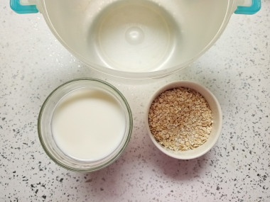 Как сварить овсянку в микроволновке на молоке? Подготовьте продукты по списку. Учитывайте, что на время приготовления каши будет влиять сорт овсяных хлопьев (о выборе овсянки и особенностях её приготовления читайте в статье по ссылке в конце рецепта), а также мощность вашей микроволновки.