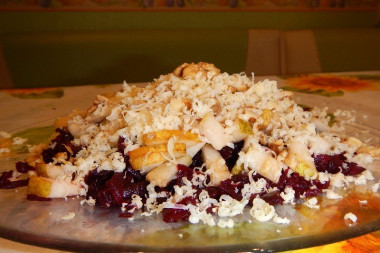 Салат из сырой свеклы с сыром и грушей великолепен! У меня не было мягкого сыра, я добавила пармезан. Бесподобное сочетание груши, свёклы, сыра и грецких орехов. И ароматная заправка с лимонным соком. Шикарно! Спасибо за удовольствие! Вкуснятина Букетик