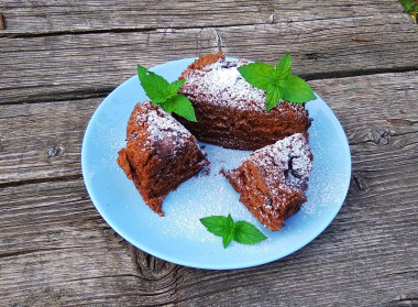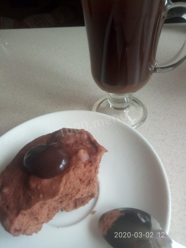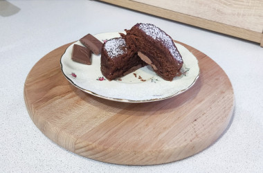 К дочке в гости пришла подружка и мне захотелось угостить девочек чем-то вкусным. Но пироги у нас закончились. Как хорошо выручают такие вот быстрые рецепты. Тесто я не стала делить по двум кружкам, а выложила его в керамическую миску, в середину положила кусочки шоколада. Правда при выпекании шоколад переместился не в центр, а разошелся к краям. Кекс отлично поднялся благодаря сухим стенкам. Мякиш кекса нежный, сочный, пористый. Аромат шоколада потрясающий. На вкус кекс насыщенно шоколадный, очень вкусный. Девчонкам понравилось!