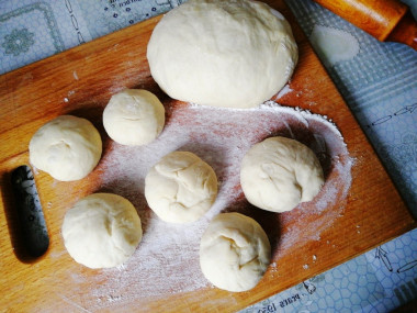 Разделите тесто на несколько кусочков по 70-80 граммов. У меня получилось 13 штук.