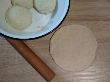 Присыпать поверхность стола мукой и при помощи скалки раскатать шарик теста в круг диаметром, примерно равным размеру сковороды, на которой будут выпекаться лепешки.