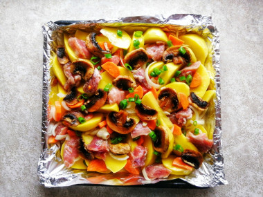 Удачный рецепт, спасибо. Запечь картошку с мясом можно в фольге.