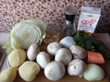 Вместо привычных нам жирных, наваристых супов попробуйте приготовить такой легкий низкокалорийный супчик. Он не оставит равнодушным ваших родных. Отлично подойдет для тех, кто следит за своей фигурой. Суп получается очень вкусный. Его можно кушать и на обед, и на ужин. Пекинская капуста разнообразит привычные супы с грибами и придаст ему пикантный вкус. Раньше пекинская капуста не пользовалась особой популярностью среди хозяек нашей страны. Привозилась издалека и стоила недешево. Сейчас ее выращивают в наших краях, она стал доступна многим покупателем, появились новые, вкусные и удивительные рецепты с пекинской капустой. В пекинской капусте всего 13 ккал в 100 граммах продукта. Содержащаяся в листьях капусты клетчатка благотворно воздействует на работу кишечника. Пекинская капуста заменяет привычную нам белокочанную. Она легче усваивается. "Пекинка" используется в супах, борщах, овощных рагу, гарнирах, при приготовлении голубцов. Также этот сорт прекрасно зарекомендовал себя в маринованном, соленом, квашенном, сушеном виде.