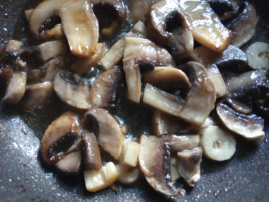 Тем временем моем шампиньоны, нарезаем кубиками или дольками (по вашему желанию) и обжарим на сковороде.