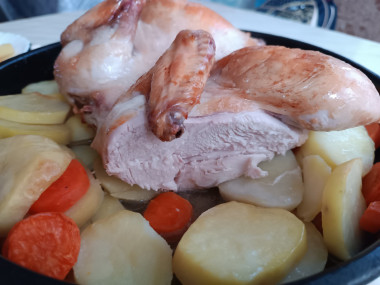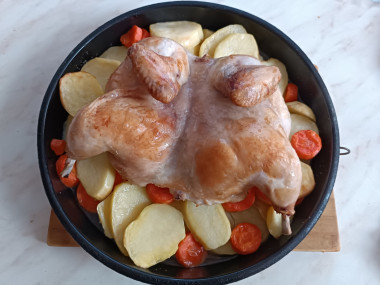 Сегодня на обед, как раз испекла курицу целиком с картошкой в духовке!
