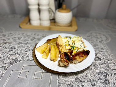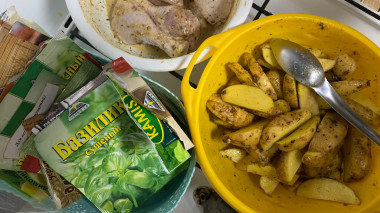 Ой, как же все успеть, особенно когда у тебя ремонт и как же не хочется есть полуфабрикаты 🤮. Вот тогда и приходит на помощь духовка. Замариновала курочку, мужчинам бедра, себе крылья, и побежала мужу помогать, прибежала, почистила картошку, духовку уже сын включил, поставила все запекаться и на 40 минут опять в подмастерье. Тут и ужин готов, ароматное, сочное, вкусное блюда, мужчины мои пальчики облизывают и маму нахваливают, а я про себя говорю: «Вот спасибо, Мария, за такой отличный рецепт» 🌺