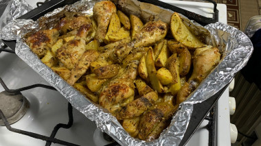Курица на противне в духовке с картошкой - классический рецепт на все времена.