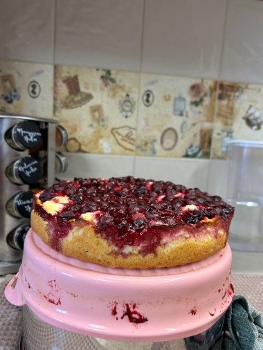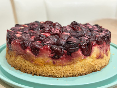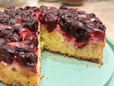 Очень понравился. Быстрый и вкусный рецептик. Правда вишня кисловата, но сладкий бисквит и творог это компенсирует.