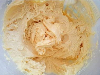 Мягкое сливочное масло взбейте с сахаром до пышности. Долго не взбивайте, масло может начать расслаиваться. Трех минут будет достаточно.