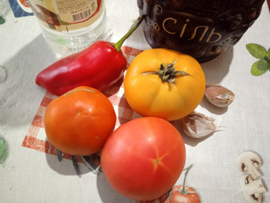 Калорийность продуктов: Помидоры, Болгарский перец, Перец острый стручковый, Чеснок, Столовый уксус, Соль