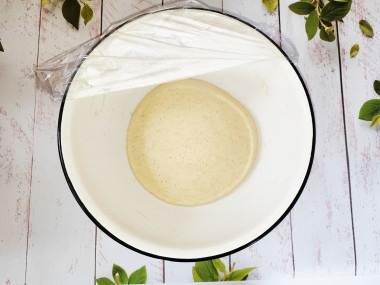 Оставьте замешанное тесто в миске и накройте его чистым кухонным полотенцем, чтобы избежать пересыхания. Поставьте миску в тёплое место без сквозняков примерно на 40 минут. За это время тесто должно увеличиться в объёме примерно вдвое.
