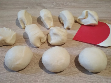 Разделите тесто на 9 равных частей, скатайте каждую часть в шарик. Количество частей будет зависеть от диаметра сковороды, на которой будут жариться лепешки.