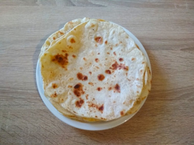 Сковороду нагрейте на сильном или среднем огне в зависимости от мощности плиты. Ничего добавлять не нужно, лепешки жарятся на сухой сковороде. С помощью скалки перенесите лепешку на хорошо разогретую сковороду, обжарьте в течение 1-2 минут до легкого румянца.