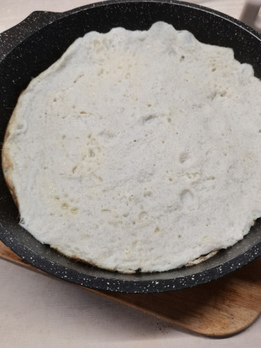 Сделала омлет на воде на сковороде по этому рецепту. Я всегда готовлю омлет на молоке, а тут оно закончилось. Нашла на любимом сайте вариант такого же омлета, но только на воде. Решила попробовать. Использовала домашние яйца и мелкую соль. Растопила на сковороде сливочное масло вместо постного. Взболтала вилочкой яйца с солью. Добавила чистую воду и перемешала. На разогретую сковородку вылила яичную массу. Готовила на медленном огне под крышкой по описанию в рецепте. Готовый омлет переложила на тарелку, он немного деформировался, но на вкус это совершенно не повлияло. Посыпала омлет на воде свежемолотым черным перцем и зеленью укропа. Получилось вкусно и ароматно. Омлет очень нежный, лёгкий и воздушный. Подавала на завтрак с огурчиком и куриной колбаской. Омлет на воде получился не хуже, чем на молоке. Рекомендую! Отличный рецепт! Большое спасибо автору)