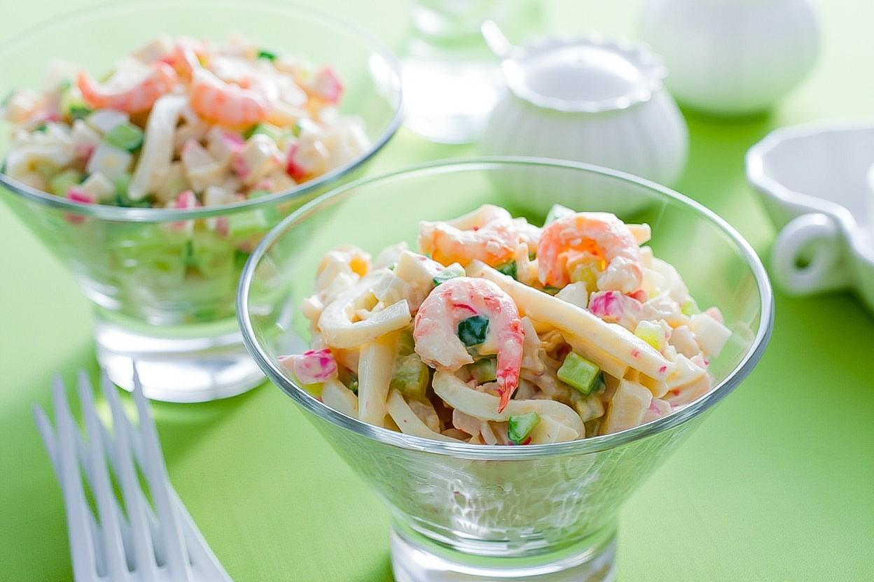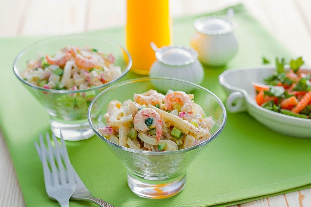 Салаты на основе морепродуктов стали особенно популярны в советской и постсоветской кухне с увеличением доступности замороженных даров моря. Сочетание креветок, кальмаров и крабовых палочек (суррогата крабового мяса) – это удачный пример «морского коктейля», который позволяет получить насыщенный вкус при относительно невысокой стоимости. Такие салаты часто ассоциируются с праздничным застольем.