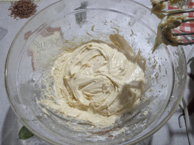 В мягкое сливочное масло добавьте весь объем сахара и тщательно разотрите до однородной консистенции с помощью миксера.