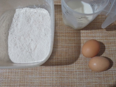 Как сделать тесто для заливного пирога на молоке? Подготовьте необходимые ингредиенты. Муку берите высшего сорта. Молоко возьмите любой жирности. Яйца нужны крупные отборные. Если яйца мелкие, возьмите 3 штуки. О том, как правильно выбрать яйца можно прочитать в статье по ссылке внизу. Яйца и молоко должны быть комнатной температуры, поэтому заранее достаньте их из холодильника. Паприку можете заменить или дополнить куркумой или другими специями по вкусу.