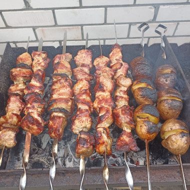 Сегодня у нас на ужин шашлык из свинины на углях на мангале. Выбрали именно этот рецепт, потому что здесь самый простой и проверенный маринад, если замариновать мясо надо быстро, а главное, вкусно. Тут как раз подходит именно минералка. Мы, честно говоря, взяли просто газированную воду. Она прекрасно размягчает мясные волокна и делает шашлык мягким. Что и получилось по этому рецепту. Мясо буквально можно было есть губами, такое оно получилось нежное и сочное! Всем рекомендую приготовить быстрый и аппетитнейший шашлык по этому рецепту! Автору наша сердечная благодарность!