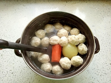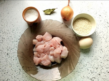 Вместо говядины решила взять куриную грудку, чтобы ребенку было легче жевать. Рис у меня был круглозерный, наверное по этому "иголочки" у ёжиков не особо получились). После замешивания фарша убрала его на час в холодильник. Благодаря этому шарики легко лепились. В бульон положила лавровый лист, луковицу и потом решила добавить кусочек морковки.